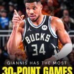 Giannis Antetokounmpo boasts most 30-point games in the NBA over the last 10 years
