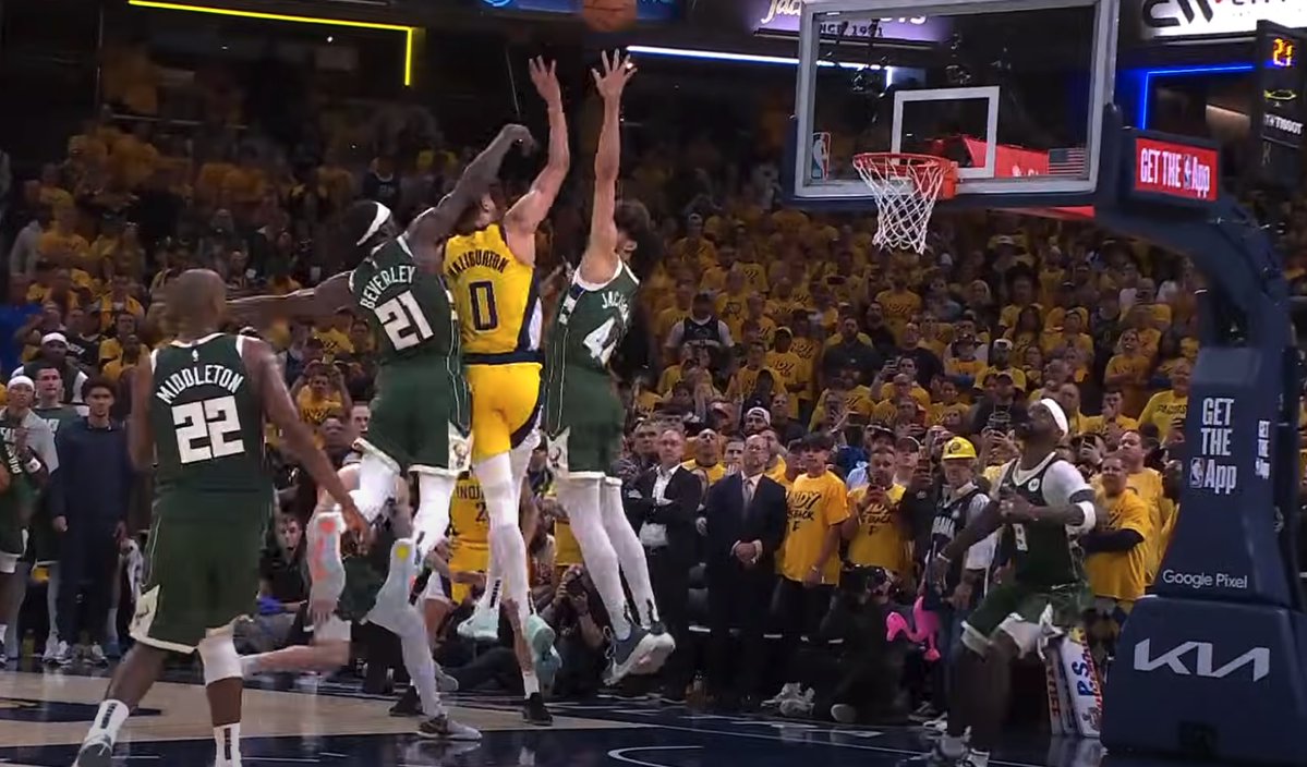 From last night: Haliburton hits game-winner, becomes fourth Pacer to record a playoff triple-double; Pacers entertain in first playoff home game in five years; Middleton goes off but Lillard leaves injured.