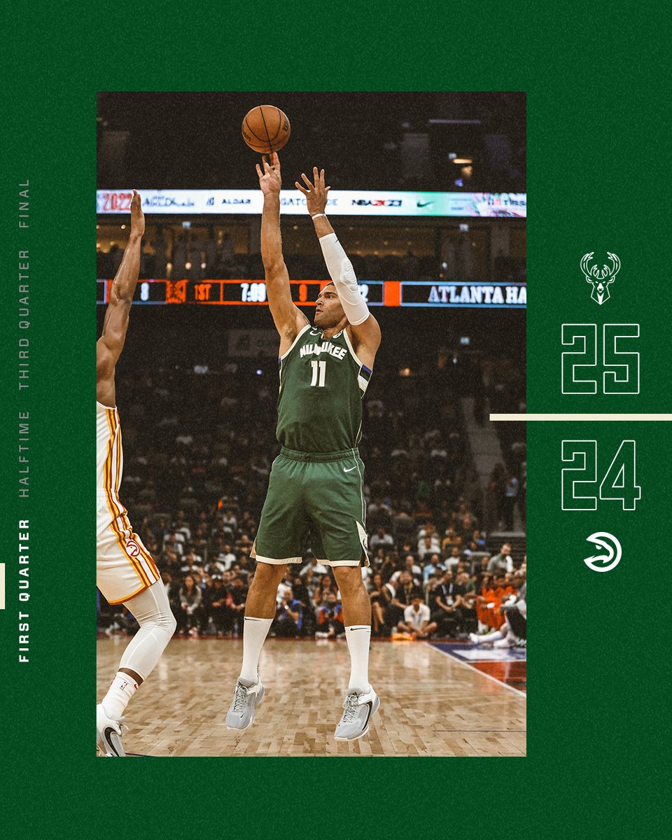 Jrue Holiday, Pat Connaughton, Grayson Allen, Brook Lopez and bit.ly/BobbyPortis start for the #Bucks today vs. the #Hawks in the finale in Abu Dhabi. – 12:09 PM