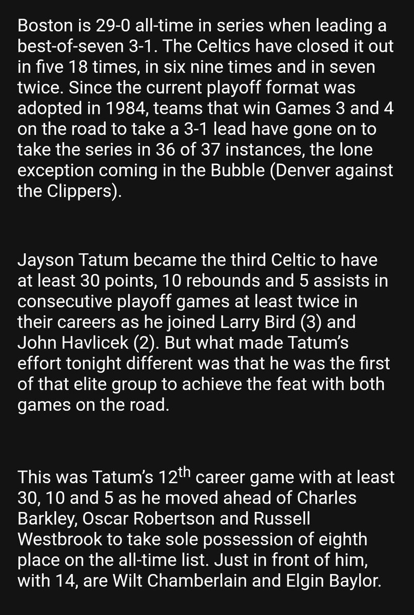 )Big shots by both Jays down the stretch. Celtics undefeated in crunch time playoff games (1-0). pic.twitter.com/Bz8pdNwvJ1 – 9:28 PM