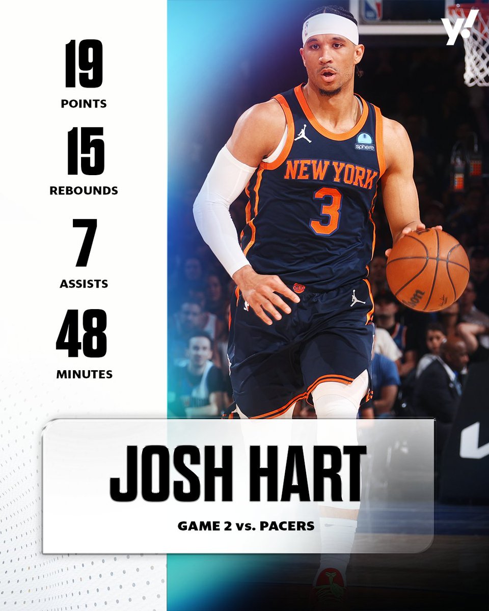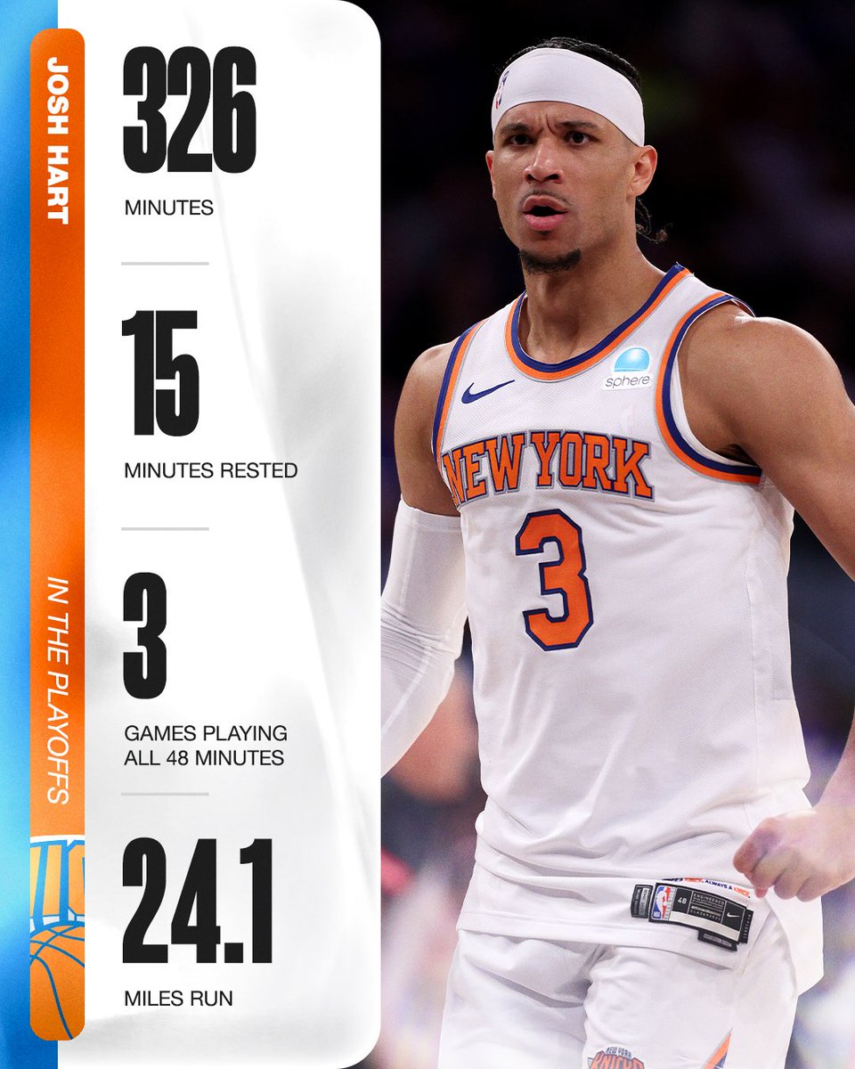Josh Hart has really only sat 15 of the 341 total minutes for the Knicks these playoffs 😳 pic.twitter.com/Mjca1iv9PZ – 8:12 PM