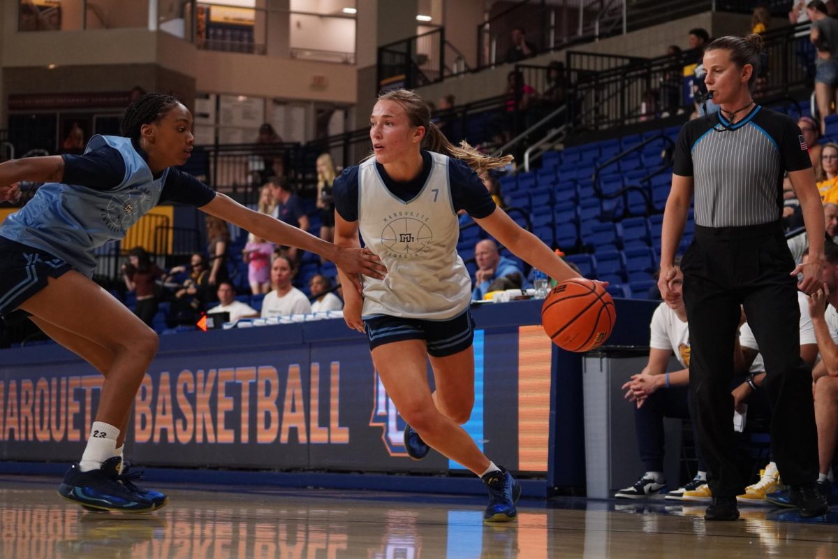 And Friday night’s preseason Blue & Gold scrimmage at the Al McGuire Center provided a first look of the Golden Eagles in year two under Cara Consuegra.