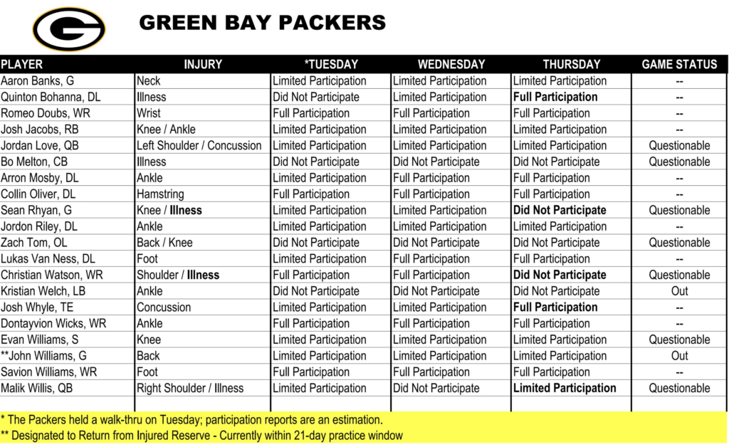 Here’s the final injury report before the Packers take on the Ravens Saturday night.