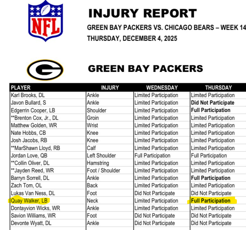 The return of Quay Walker is huge, especially given the heartbreaking season ending injury of Devonte Wyatt. The Packers need Walker to be key piece in defending against the Bearsʼ potent run game.